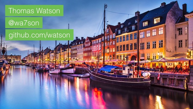 developer at github.com/watson • Principal Software Engineer at Elastic • Node.js Core Member • Tweets as @wa7son • Slides: github.com/watson/talks