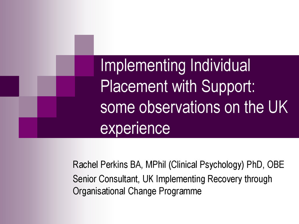 easy – there are many barriers • Although an increasing number of mental health services in the UK are establishing Individual Placement with Support, most people do not have access to it • A great deal of money is still invested in non-evidence based vocational services: sheltered work, pre-vocational training