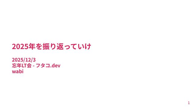 2025年を振り返っていけ 2025/12/3 忘年LT会 - フタコ.dev wabi 1