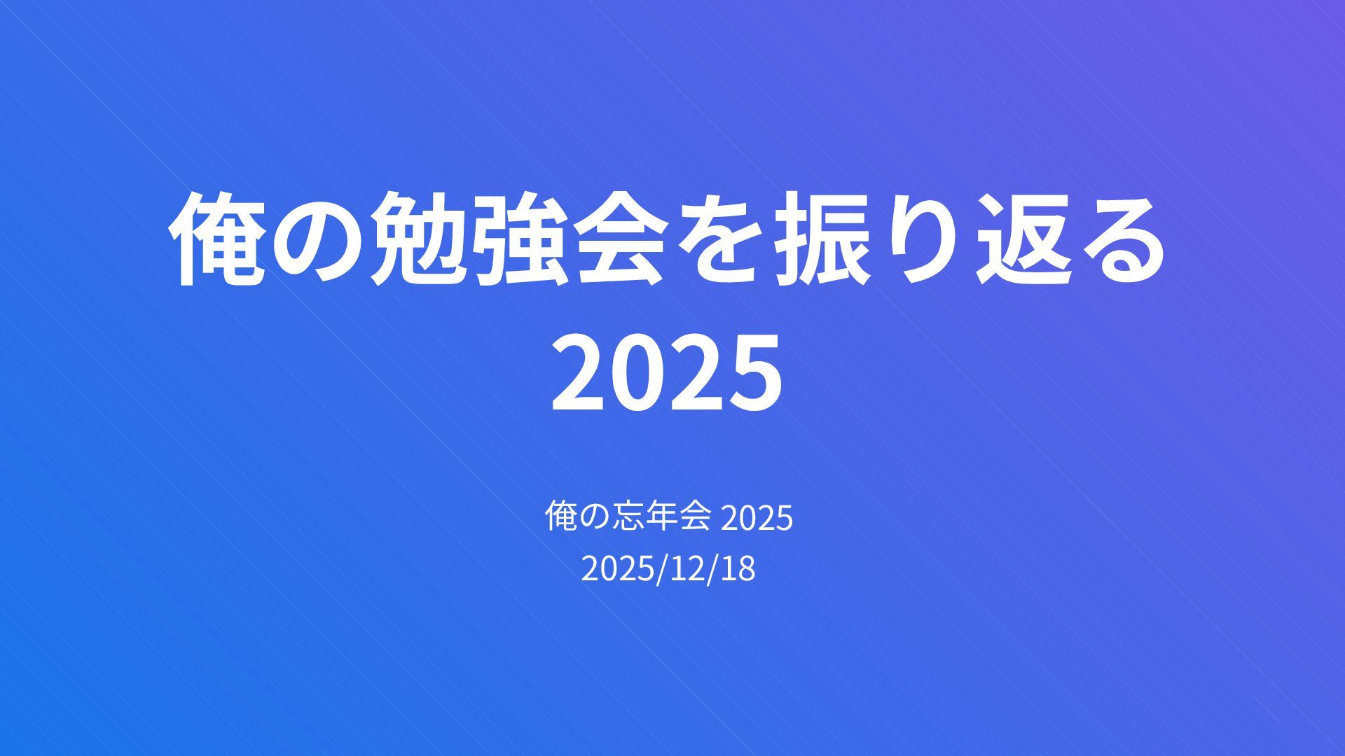 俺の勉強会を振り返る 2025 俺の忘年会 2025 2025/12/18