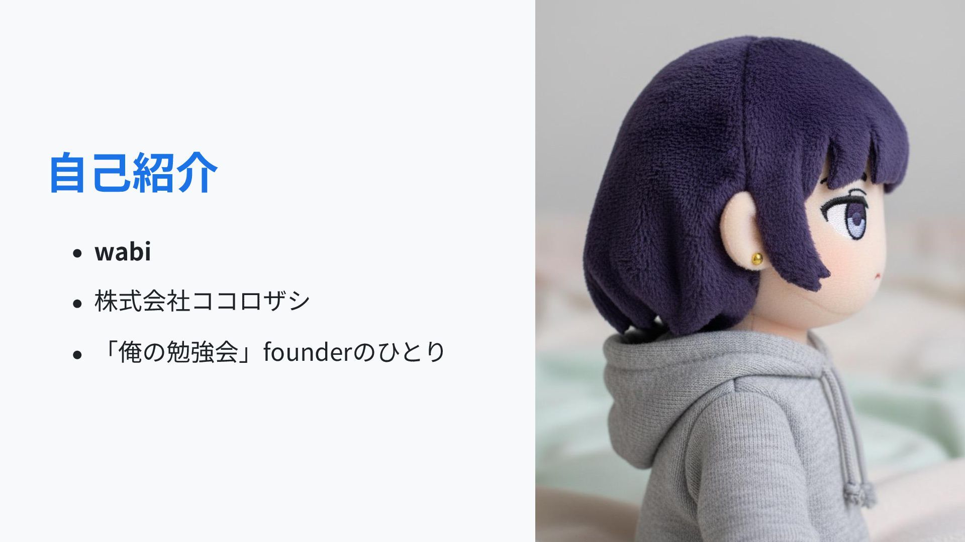 ⾃⼰紹介 wabi 株式会社ココロザシ 「俺の勉強会」founderのひとり