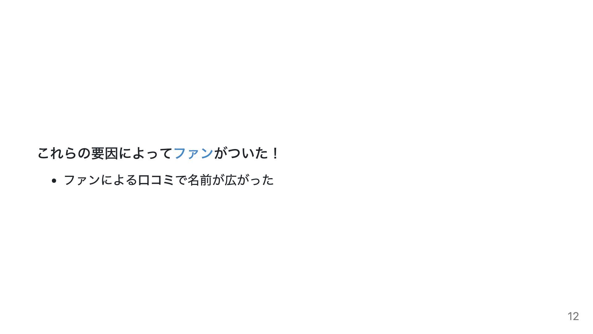 これらの要因によってファンがついた! ファンによる口コミで名前が広がった 12