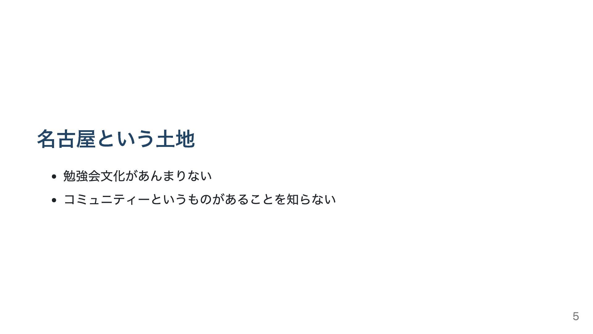 名古屋という土地 勉強会文化があんまりない コミュニティーというものがあることを知らない 5