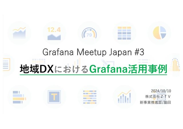 ZTVでは、昨今の異常気象による水害増加を受け、氾濫しやすい河川や用水路、ため池に水位・雨量・冠水センサを設置し、モニタリングサービスを提供しています。加えて、気象計、温湿度CO2、傾斜、積雪、罠などのIoTセンサも活用し、データの可視化範囲を広げています。本セッションでは、地域DXの一環としてIoTセンサと視覚的に分かりやすいダッシュボードの活用事例についてご紹介させていただきます。