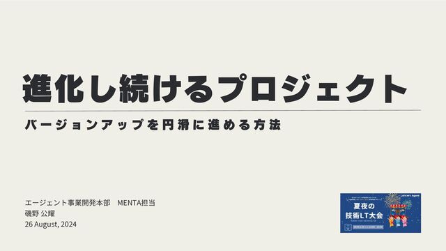 滑 に 進 め る 方 法 進化し続けるプロジェクト エージェント事業開発本部 MENTA担当 磯野 公耀 26 August, 2024