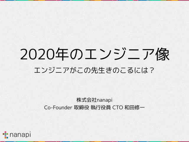 2020年のエンジニア像 エンジニアがこの先生きのこるには? 株式会社nanapi Co-Founder 取締役 執行役員 CTO 和田修一