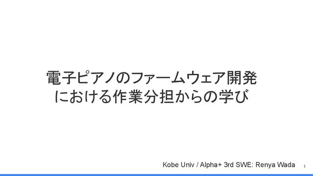 電子ピアノのファームウェア開発 における作業分担からの学び Kobe Univ / Alpha+ 3rd SWE: Renya Wada