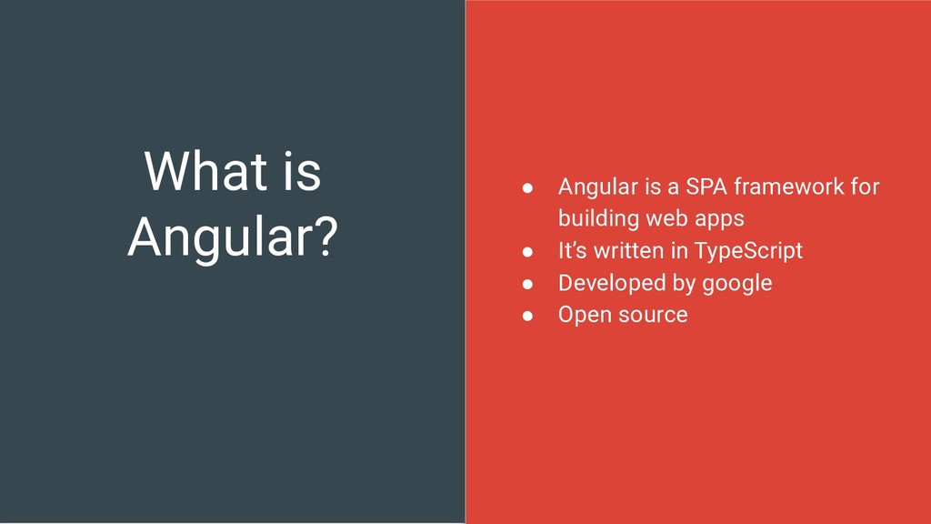 building web apps • It’s written in TypeScript • Developed by google • Open source