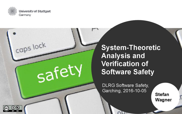 The slides to my talk at the DGLR Workshop "Software Safety" given on 2016-10-05 in Garching (at TU Munich). It describes the STAMP/STPA approach in general and our extension to connect it to tests and model checking.