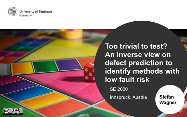 685-88455 WWW www.iste.uni-stuttgart.de/se Twitter prof_wagnerst ORCID 0000-0002-5256-8429 Institute of Software Technology Slides are available at www.stefan-wagner.biz. Joint work with Rainer Niedermayr and Tobias Röhm