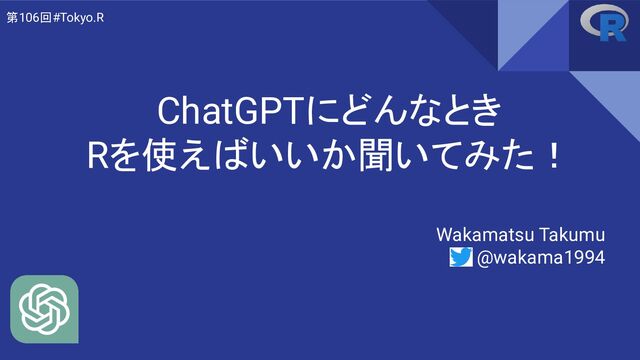 ChatGPTにどんなとき Rを使えばいいか聞いてみた! Wakamatsu Takumu @wakama1994 第106回#Tokyo.R