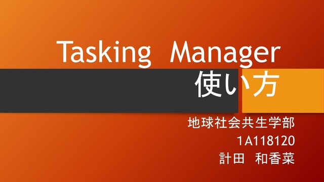 Tasking Manager 使い方 地球社会共生学部 1A118120 計田 和香菜