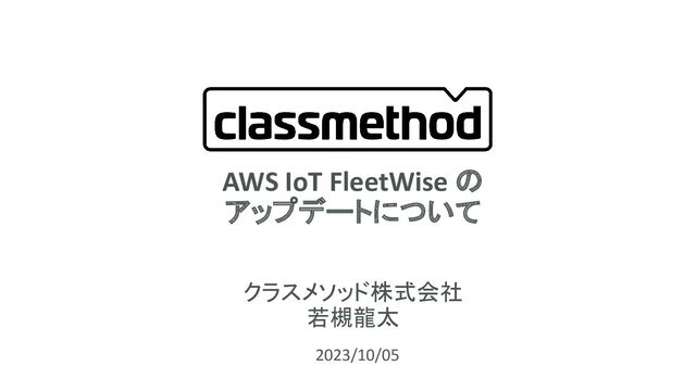 AWS IoT FleetWise の アップデートについて クラスメソッド株式会社 若槻龍太 1 2023/10/05