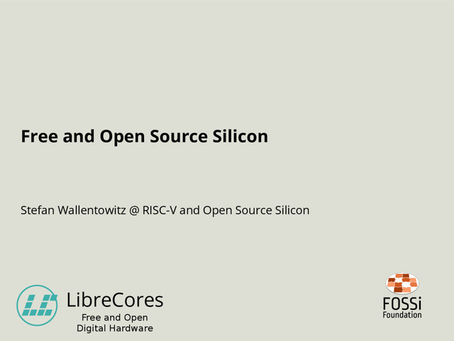 Non-profit organization – Started from OpenRISC community – Not happy with stagnation of opencores.org – Goal: Promote and help the community to build high-quality open source IP, systems and ecosystem • Three main activities of FOSSi – Community hub LibreCores.org – Licensing – Community Involvement, Conference