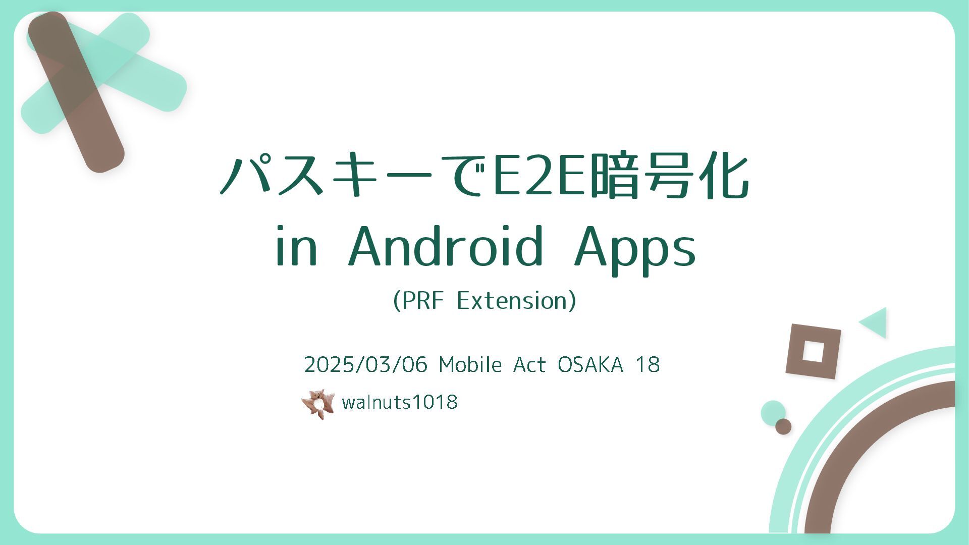 パスキーでE2E暗号化 in Android Apps (PRF Extension) 2025/03/06 Mobile Act OSAKA
