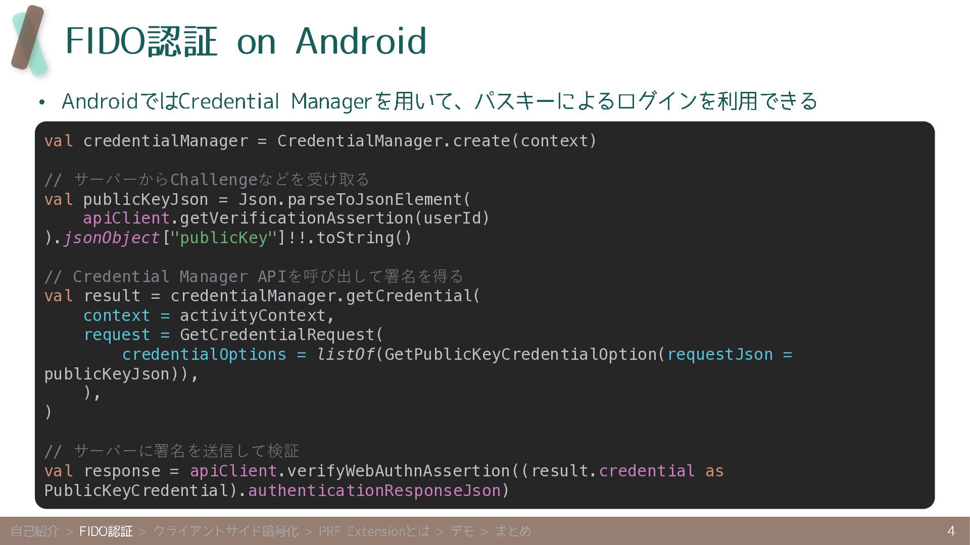 4 FIDO認証 on Android • Android 俵俵 Credential Manager 俵俵俵俵俵俵俵俵俵俵俵俵俵俵俵俵俵俵俵俵俵俵