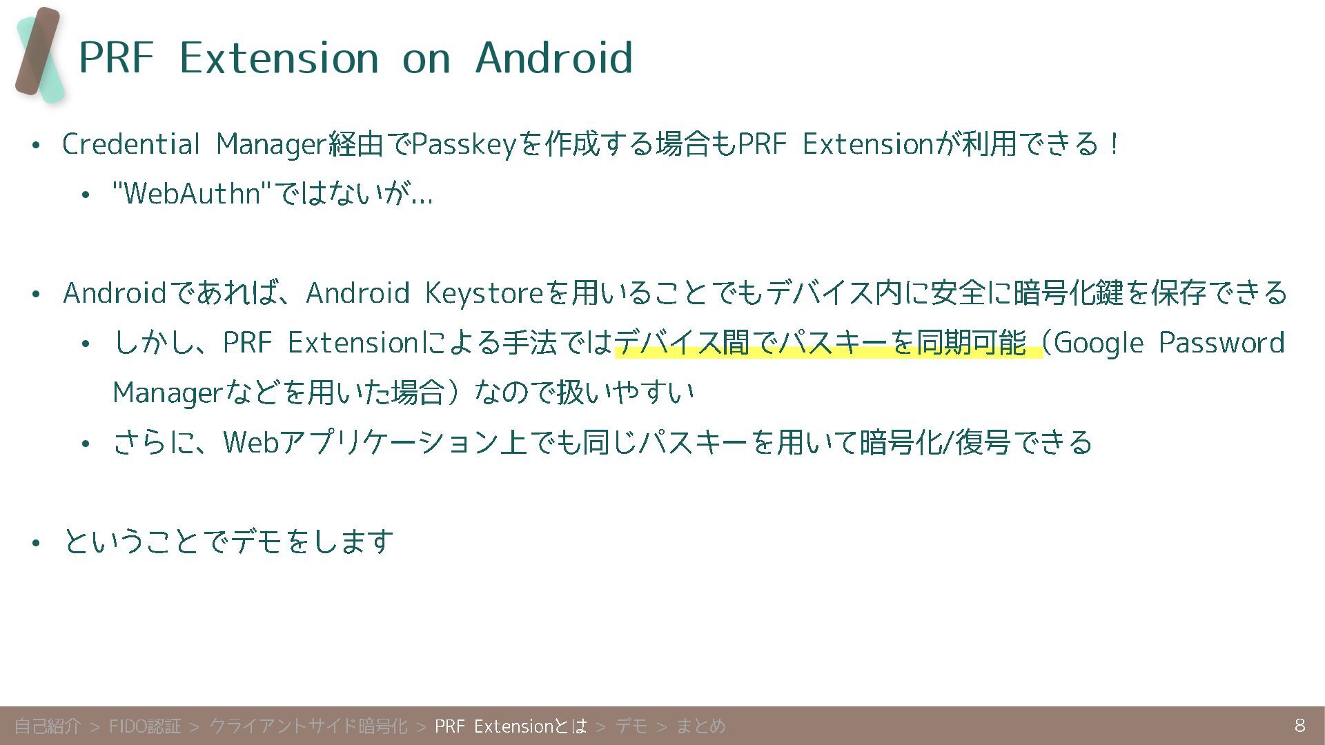 8 PRF Extension on Android • Credential Manager 俵俵俵 Passkey
