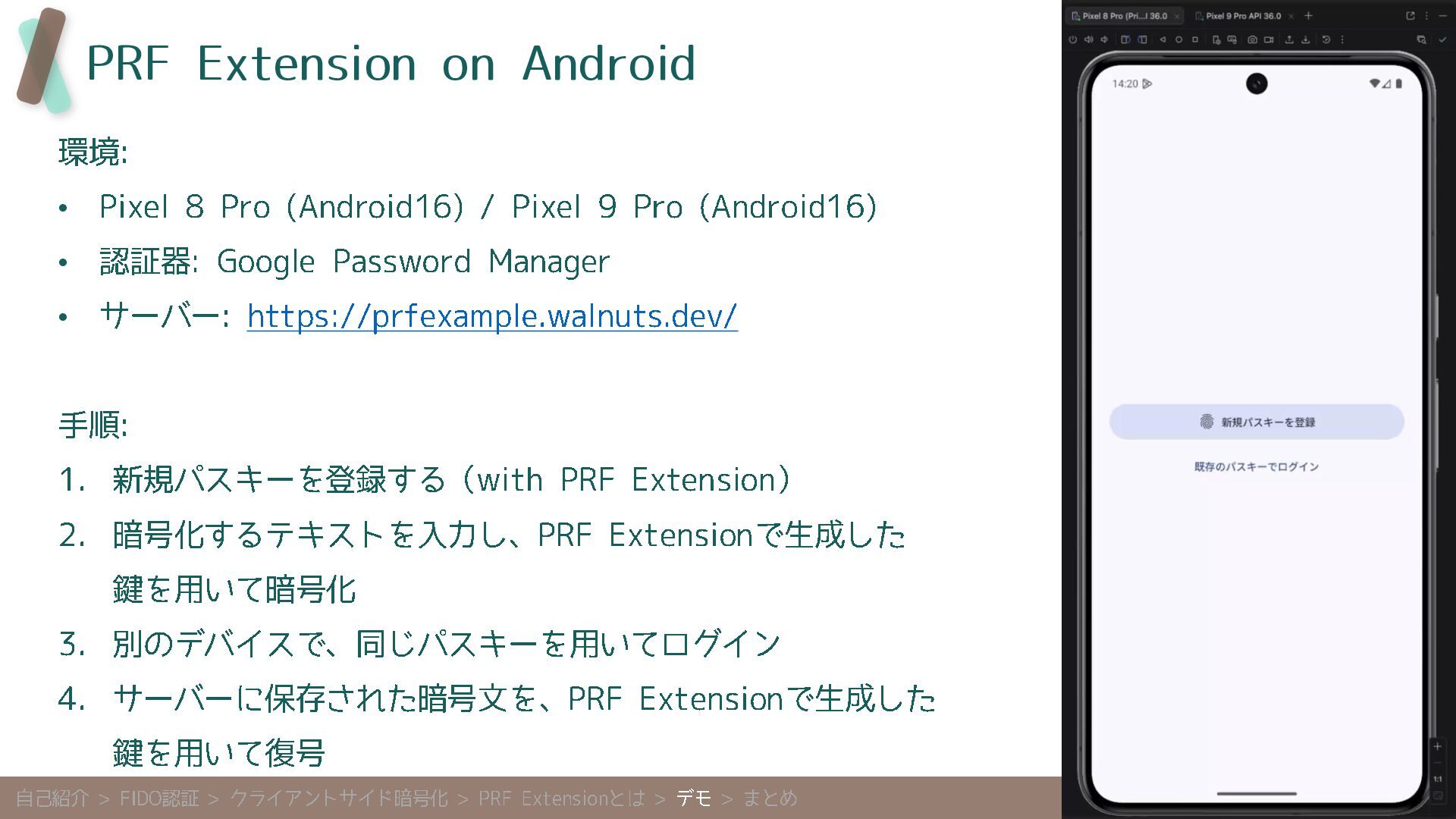 (Android16) / Pixel 9 Pro (Android16) • 俵俵俵 : Google Password Manager • 俵俵俵俵 : https://prfexample.walnuts.dev/ 俵俵 : 1. 俵俵俵俵俵俵俵俵俵俵俵俵 with PRF Extension 俵 2. 俵俵俵俵俵俵俵俵俵俵俵俵俵俵 PRF Extension 俵俵俵俵俵 俵俵俵俵俵俵俵俵 3. 俵俵俵俵俵俵俵俵俵俵俵俵俵俵俵俵俵俵俵俵俵俵 4. 俵俵俵俵俵俵俵俵俵俵俵俵俵俵俵 PRF Extension 俵俵俵俵俵 俵俵俵俵俵俵俵 9 俵俵俵俵 > FIDO 俵俵 > 俵俵俵俵俵俵俵俵俵俵俵俵 > PRF Extension 俵俵 > 俵俵 > 俵俵俵
