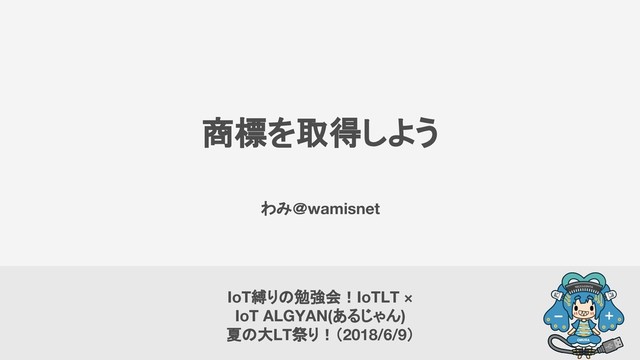 商標を取得しよう わみ@wamisnet IoT縛りの勉強会!IoTLT × IoT ALGYAN(あるじゃん) 夏の大LT祭り!(2018/6/9)
