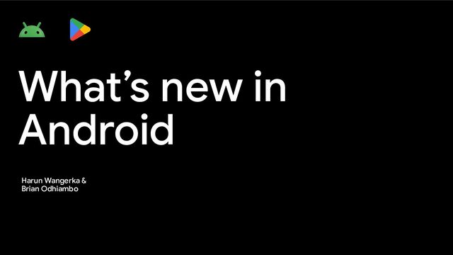 Slides for the What's New In Android Keynote at Devfest Nyeri where Brian Odhiambo and I shared the following announcements