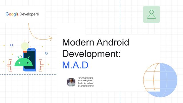 M.A.D - Modern Android Development is a collection of development tools, APIs, language and technologies from the Android Team to help developers create better apps. New to Android and Kotlin, worry not! This session covers what Modern Android Development is and shares resources for you to get easily started.