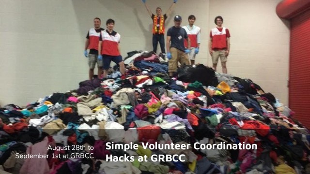 the afternoon, trained as red cross volunteer. Stayed for 30 hours. 10K evacuees. August 29th (continued) - realized there were actual citizens doing stuff, switched teams and made the Red Cross obsolete and eventually was put in charge of all volunteer intake training distribution for Red Cross + GRB. August 31th - 16 hour shift September 1st - 12 hour shift Various tools and hacks I did to make the American Red Cross obsolete