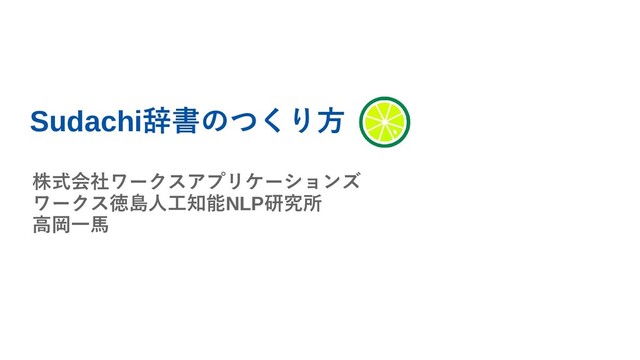 Sudachi辞書のつくり方 株式会社ワークスアプリケーションズ ワークス徳島人工知能NLP研究所 高岡一馬