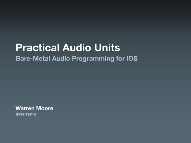 basic wrapper for reading and writing audio data on iOS http://alexbw.github.com/novocaine/ The Amazing Audio Engine: a much more sophisticated object-oriented Audio Unit wrapper (coming real soon now) http://theamazingaudioengine.com WWDC Videos: Not just Audio Units! Also Session Services and all of AVFoundation Available in iTunesU to registered developers