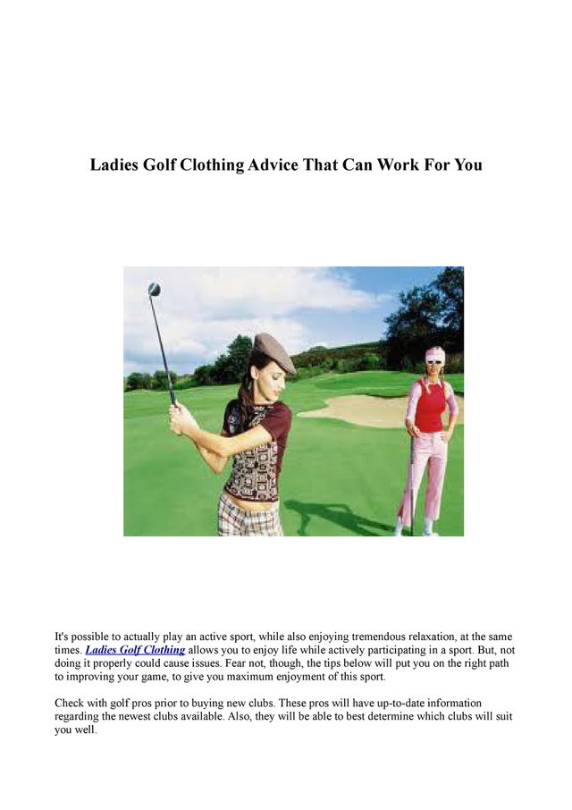 yourself from making common errors like slicing. The problem lies in improper contact between the clubface and ball during the hit, which results in right- direction curvature. Keep your shoulders, hips and knees parallel to your target line for making these free movements it is better to use Ladies Golf Trousers. In order to best achieve this, concentrate on using your hands to generate the speed in to the ball. Not trying to be too perfect will help you as you learn the game of golf. Mistakes happen and being able to laugh at yourself will not only help you recover from these mistakes, but it will also help to relax you. Don't swing until you've positioned your hands properly on your golf club. The grip should be snug against your palms, and both thumbs should point down. Your hands should be touching. For a longer drive, hold the handle a but higher up. If club slippage is happening in your hands during your golf swing, don't automatically blame your glove as being too worn out. Take a moment to check your grips and see if they are starting to show wear. If so, you will find that fresh grips are affordable and can make a world of difference in the quality of your swing. It is important that you know the exact ball you are using during each round, and to share this information with the person you are playing with. Now you will know which one is yours when they are hit close to one another. When you are at the driving range doing warmups, start your sessions out with lofted irons in the 8 or 9 range, or even your pitching wedge. Using these clubs will help you gain confidence before you move on to harder shots. Whenever you are out on the course, make sure you keep your eyes and ears open so that you don't disrupt the flow. If your group is playing slowly or experiencing a number of delays, it can be frustrating to the groups playing behind you. If your group contains a novice golfer, be ready to invite faster groups who come up behind you to play through. The sweet spot on a club is where the ball meets with it, and is then launched with perfect accuracy. Instead of practicing with only one club, you should try each one to discover the best way to hit that sweet spot. Golf balls always get lost. Instead of always using the most expensive balls, save them for times when you wish to impress others, at a tournament or with business partners, for example. If you are investing in an expensive new golf club, having it custom-fitted may be a good choice. While it may be tempting to grab a stock set off the shelf, the wide variety of body types makes it unlikely that you will fit the set without adjustment. Finding a club that is fitted to your needs will help your swing. Go ahead and save the fancy stuff for later; you surely get the idea. In essence, you need more than a handful of skills to play golf well. You also need to develop the proper swing and the ability to focus. Use what you have learned from this article to hone your skills.
