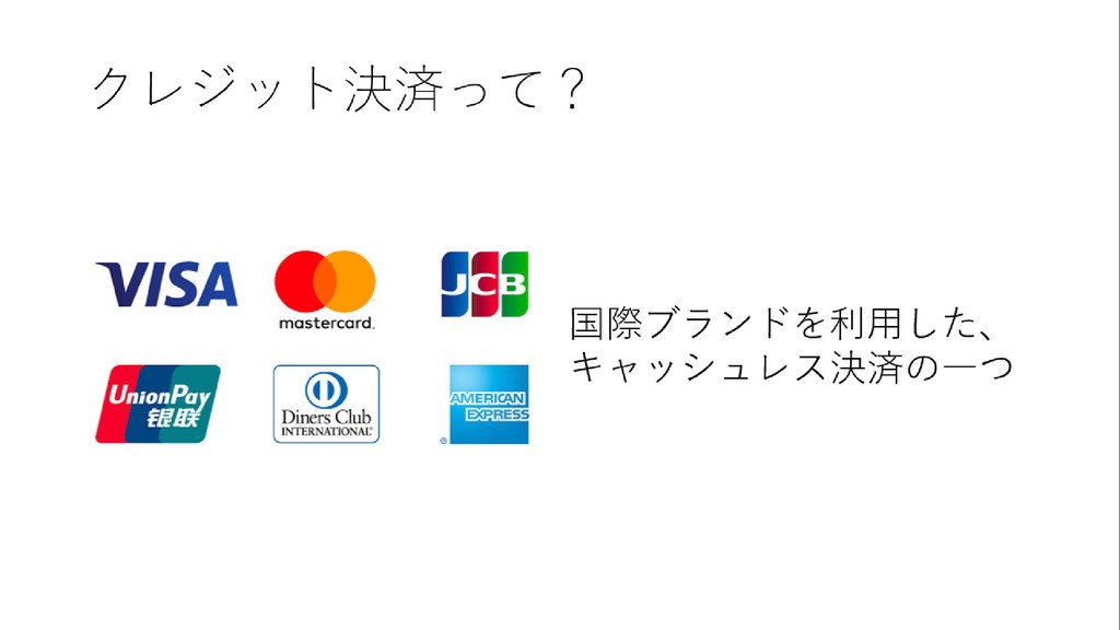 学習発表会で発表したクレジットカード決済の仕組みについてのスライドです。あくまでも発表用の資料なので、これを見ればすべて発表の内容がわかるなどというものではありません。ご了承ください。