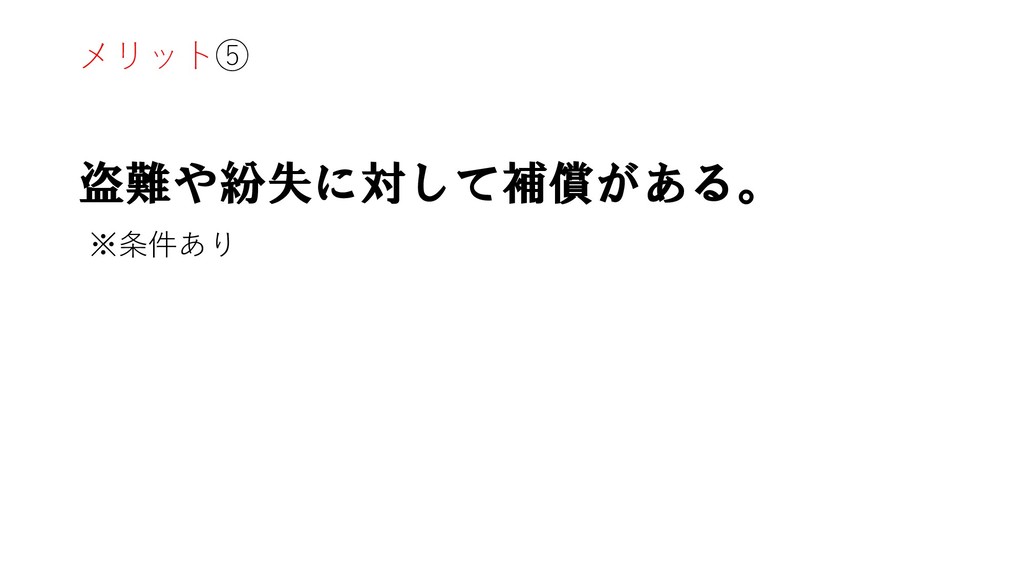 メリット⑤ 盗難や紛失に対して補償がある。 ※条件あり