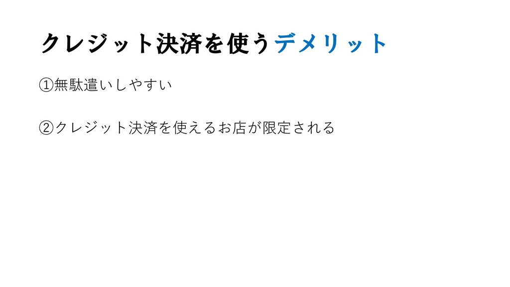 クレジット決済を使うデメリット ①無駄遣いしやすい ②クレジット決済を使えるお店が限定される