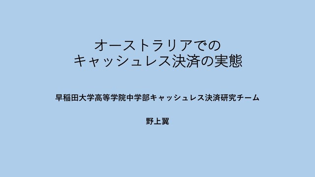 学習発表会で利用した日本及びオーストラリアでのキャッシュレスの情勢についての資料です。