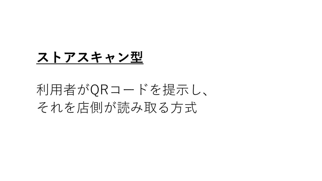 ストアスキャン型 利用者がQRコードを提示し、 それを店側が読み取る方式
