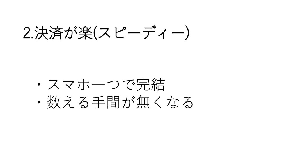 2.決済が楽(スピーディー) ・スマホ一つで完結 ・数える手間が無くなる