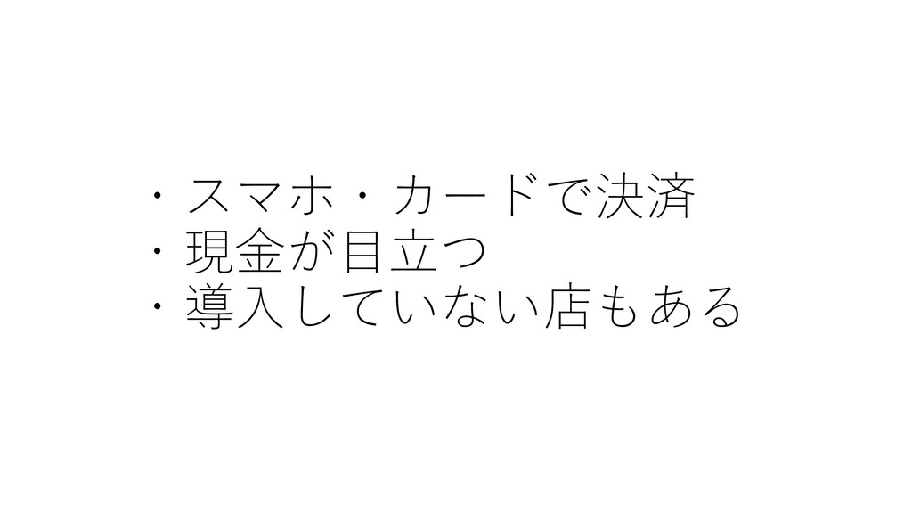 ・スマホ・カードで決済 ・現金が目立つ ・導入していない店もある