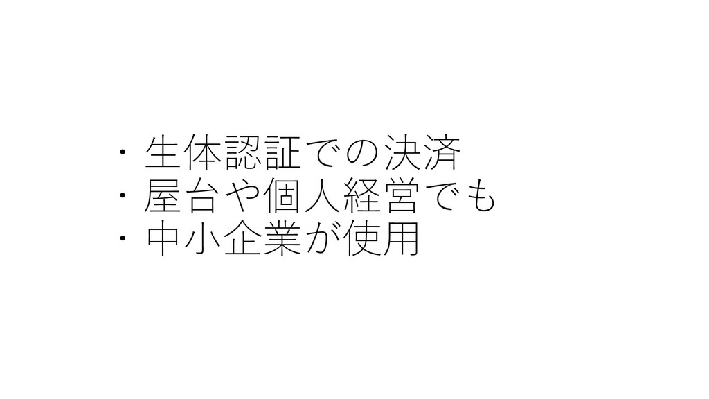 ・生体認証での決済 ・屋台や個人経営でも ・中小企業が使用