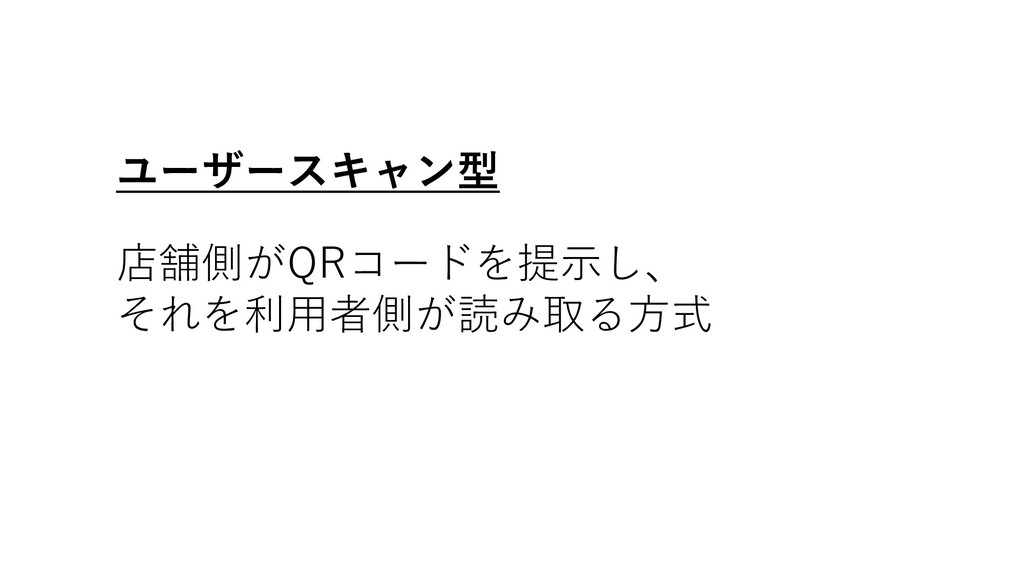 ユーザースキャン型 店舗側がQRコードを提示し、 それを利用者側が読み取る方式