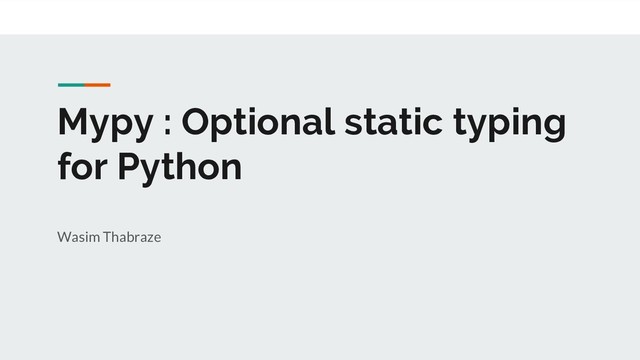 code we can create stub files (.pyi files) to declare the types of variables and methods • Stub files do not contain run time logic and the method body is replaced with ellipses. x: int def func1(code: str) -> int: ... def func2(a: int, b: int = ...) -> int: …