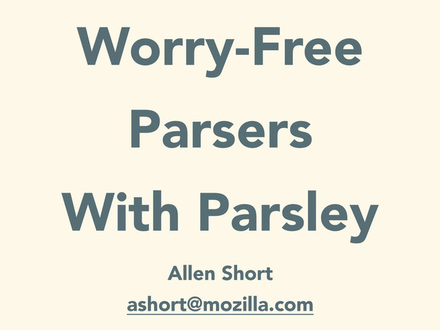 Writing effective parsers for structured formats has usually required either tedious or inscrutable code. Here we introduce PEG parsers, which provide a concise and understandable way to write parsers for complex languages, as implemented via the Parsley library.