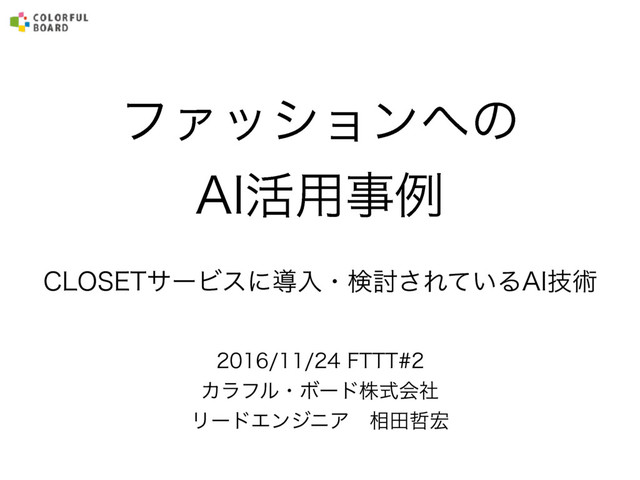 ϑΝογϣϯͷ "*׆༻ࣄྫ $-04&5αʔϏεʹಋೖɾݕ౼͞Ε͍ͯΔ"*ٕज़ '555 ΧϥϑϧɾϘʔυגࣜձࣾ ϦʔυΤϯδχΞɹ૬ా