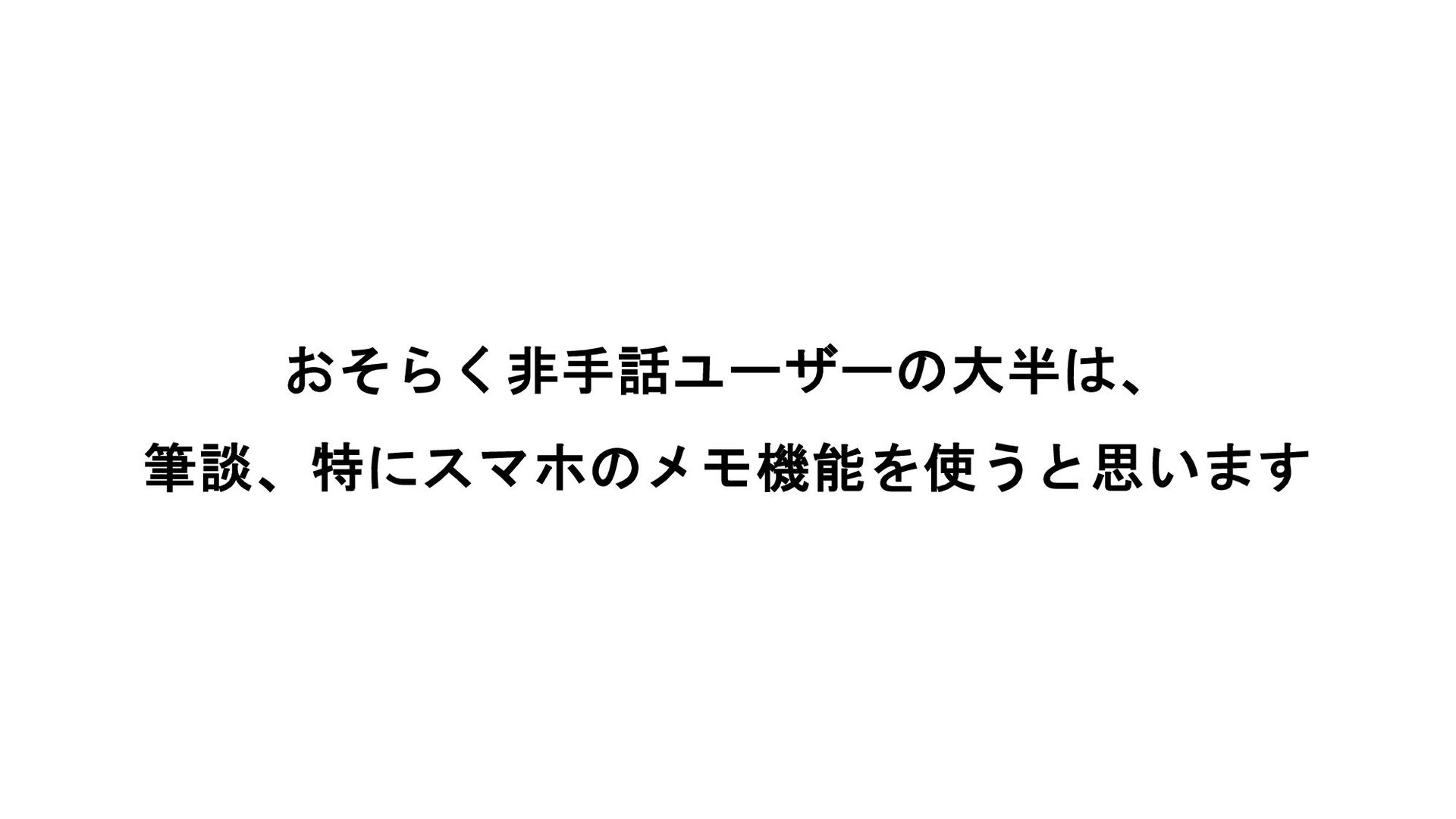 おそらく非手話ユーザーの大半は、 筆談、特にスマホのメモ機能を使うと思います