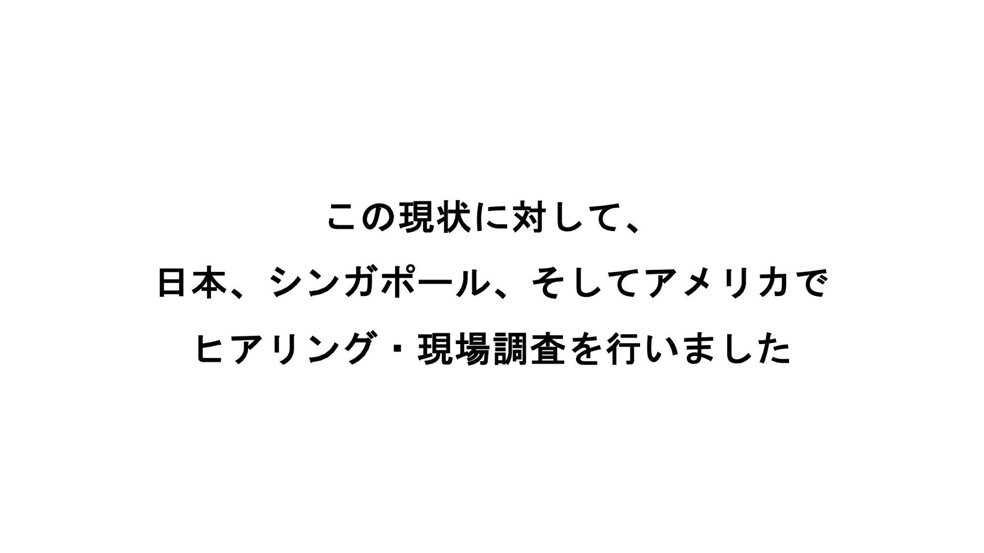 この現状に対して、 日本、シンガポール、そしてアメリカで ヒアリング・現場調査を行いました