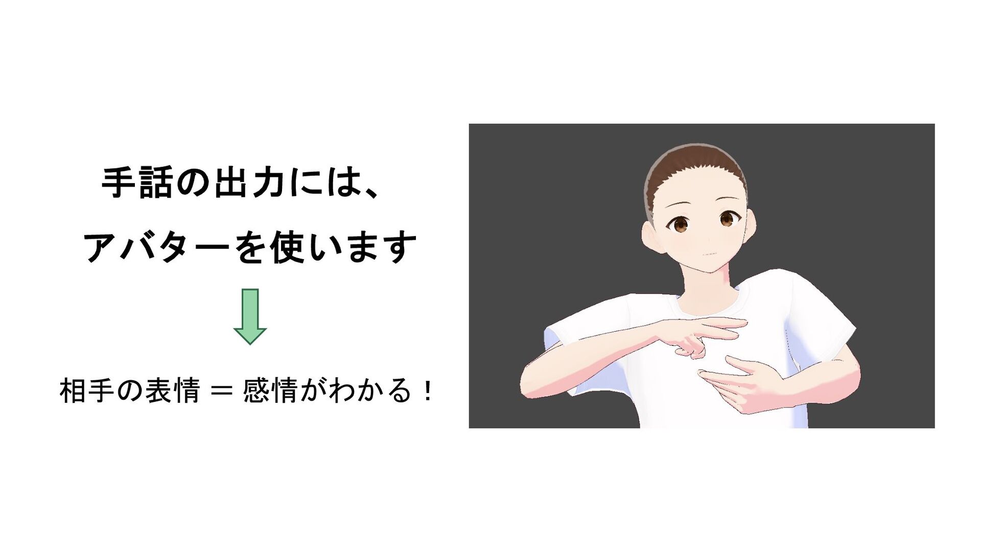 相手の表情 = 感情がわかる! 手話の出力には、 アバターを使います