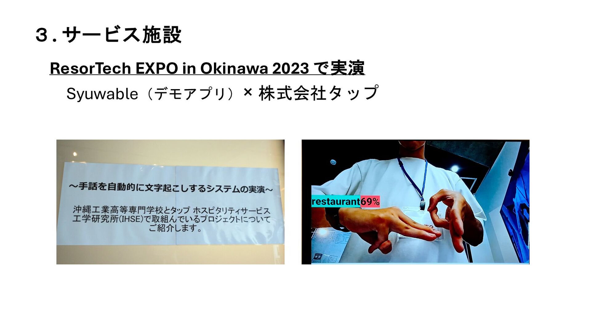 ResorTech EXPO in Okinawa 2023 で実演 Syuwable(デモアプリ)× 株式会社タップ 3. サービス施設