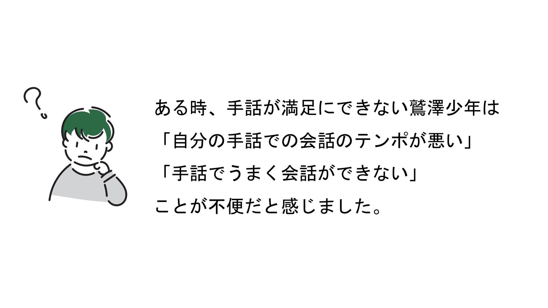 ある時、手話が満足にできない鷲澤少年は 「自分の手話での会話のテンポが悪い」 「手話でうまく会話ができない」 ことが不便だと感じました。