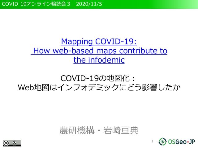 説明したのは、 Mapping COVID-19: How web-based maps contribute to the infodemic https://doi.org/10.1177%2F2043820620934926