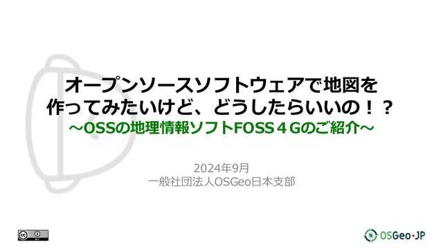 オープンソースソフトウェアで地図を 作ってみたいけど、どうしたらいいの!? 〜OSSの地理情報ソフトFOSS4Gのご紹介〜 2024年9月 一般社団法人OSGeo日本支部