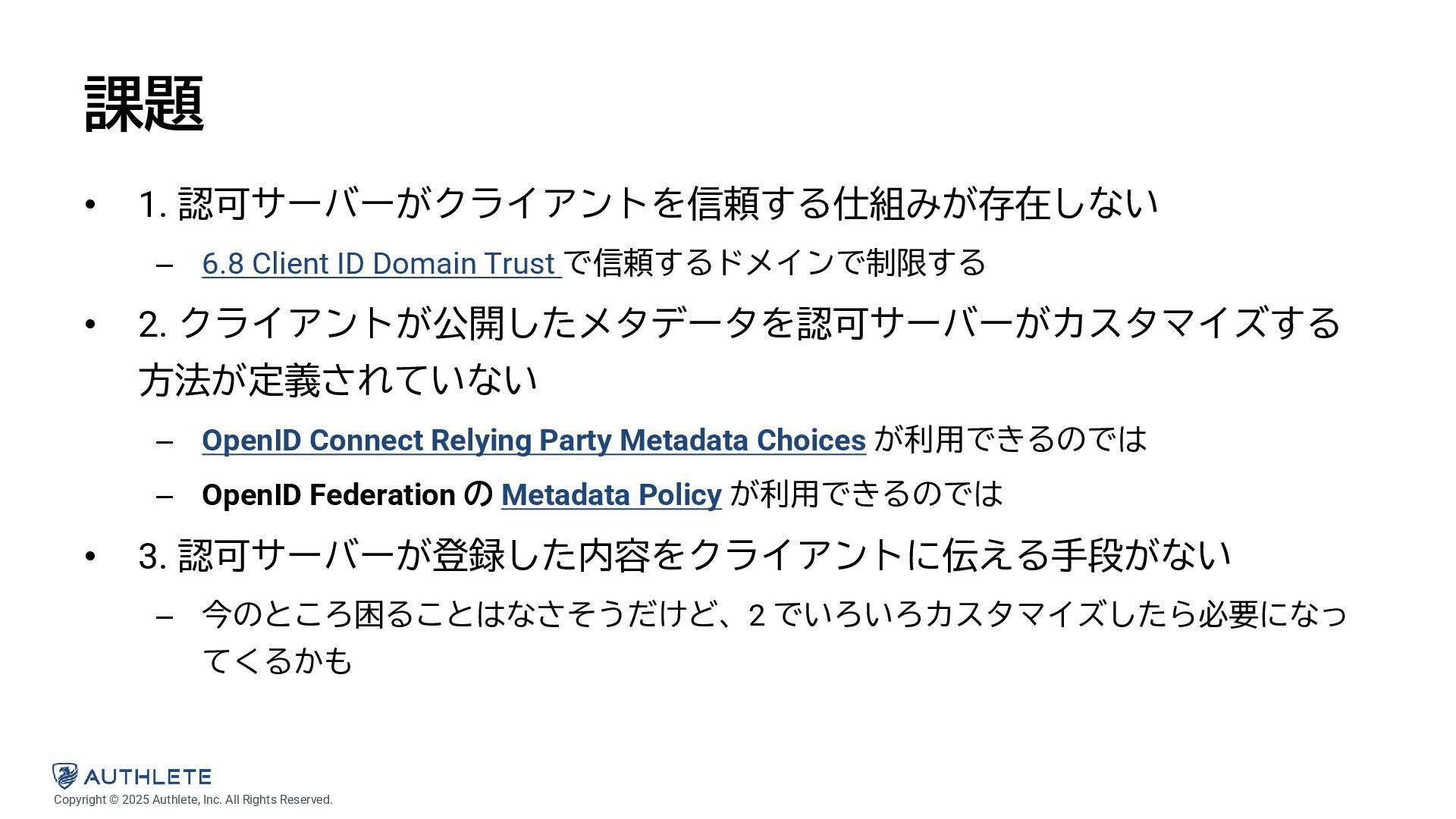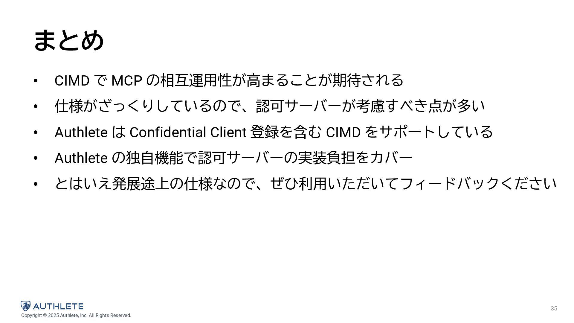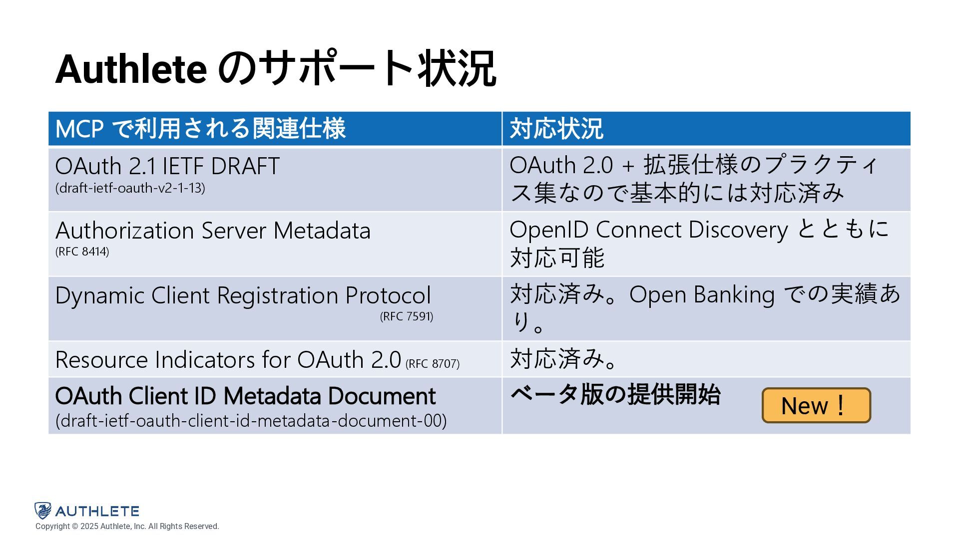 FAPI2, FAPI-CIBAおよび各国のオープンファイナンスや先進的な OAuth/OIDC 拡張仕様を迅速に実装。 またOpenID Foundationは「OpenID認定プログラム」における「 適合性テスト」開発のテストベッドにAuthleteを活用。 結果的に、同テストがリリースされた段階で、Authleteは他社に先んじて合格済みの状態になっている Authleteが選ばれる理由 OAuth/OIDC仕様への業界最速・最多準拠 • OpenID Providers (OP) & Profiles • Basic OP • Implicit OP • Hybrid OP • Config OP • Dynamic OP • Form Post OP • FAPI1-Advanced OPs & Profiles • FAPI OPs & Profiles • FAPI Adv. OP w/ MTLS • FAPI Adv. OP w/ MTLS, PAR • FAPI Adv. OP w/ Private Key • FAPI Adv. OP w/ Private Key, PAR • FAPI Adv. OP w/ MTLS, JARM • FAPI Adv. OP w/ Private Key, JARM • FAPI Adv. OP w/ MTLS, PAR, JARM • FAPI Adv. OP w/ Private Key, PAR, JARM • FAPI OP - UK Open Banking • UK-OB Adv. OP w/ MTLS • UK-OB Adv. OP w/ Private Key • FAPI OP - Australia CDR • AU-CDR Adv. OP w/ Private Key • AU-CDR Adv. OP w/ Private Key, PAR • FAPI OP - Brazil Open Banking • BR-OB Adv. OP w/ MTLS • BR-OB Adv. OP w/ Private Key • BR-OB Adv. OP w/ MTLS, PAR • BR-OB Adv. OP w/ Private Key, PAR • BR-OB Adv. OP w/ MTLS, JARM • BR-OB Adv. OP w/ Private Key, JARM • BR-OB Adv. OP w/ MTLS, PAR, JARM • BR-OB Adv. OP w/ Private Key, PAR, JARM • BR-OB Adv. OP DCR • FAPI OP - Brazil Open Insurance • BR-OB Adv. OP w/ MTLS • BR-OB Adv. OP w/ Private Key • BR-OB Adv. OP w/ MTLS, PAR • BR-OB Adv. OP w/ Private Key, PAR • BR-OB Adv. OP w/ MTLS, JARM • BR-OB Adv. OP w/ Private Key, JARM • BR-OB Adv. OP w/ MTLS, PAR, JARM • BR-OB Adv. OP w/ Private Key, PAR, JARM • BR-OB Adv. OP DCR • FAPI OP - KSA Open Banking • KSA-OB Adv. OP w/ MTLS, PAR • KSA-OB Adv. OP w/ Private Key, PAR [NEW] • FAPI-CIBA OPs • Certified OPs & Profiles • FAPI-CIBA OP Poll w/ MTLS • FAPI-CIBA OP Poll w/ Private Key • FAPI-CIBA OP Ping w/ MTLS • FAPI-CIBA OP Ping w/ Private Key • FAPI2 Providers & Profiles • FAPI 2.0 OP Security Profile Final & Message Signing Final • FAPI2SP OP MTLS + MTLS • FAPI2SP OP MTLS + DPoP • FAPI2SP OP private key + MTLS • FAPI2SP OP private key + DPoP • FAPI2SP OP OpenID Connect • FAPI2MS OP JAR • FAPI2MS OP JARM • Australia FAPI 2.0 OP ConnectID Final • FAPI2MS with ConnectId support 3 * https://openid.net/certification/ をもとに構成