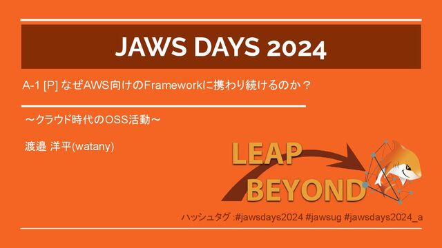 JAWS DAYS 2024 ハッシュタグ:#jawsdays2024 #jawsug #jawsdays2024_a JAWS DAYS 2024 ~クラウド時代のOSS活動~